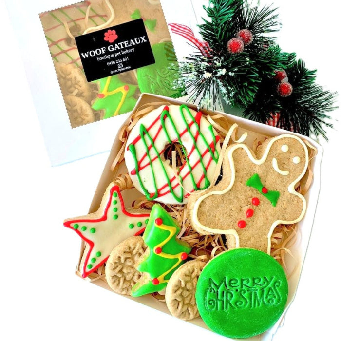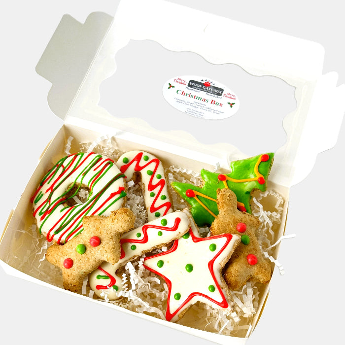 Festive treats your pup will go crazy for! This Christmas Cookie Box features our handmade dog biscuits packed with wholesome ingredients like wholemeal flour, cinnamon, and ginger. Choose your size and watch those tails wag. Store in a cool, dry place for up to 3 months of tail-wagging joy.